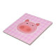 Ilustracion de un lindo personaje de cerdo sobre un fondo de estilo picnic rosado