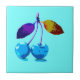 Cerezas vibrantes de color azul claro al estilo del arte pop.