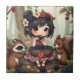 A sweet fairy tale tile for a child. A cute little cartoon chibi fairy eating blackberries with her forest friends, a raccoon and squirrel.