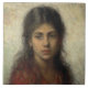 Este diseño presenta una pintura del artista ruso Alexei Alexeievich Harlamoff (1840-1925). Muestra a una hermosa joven con el pelo castaño oscuro y labios rojos completos. Lleva puesto un chal rojo y mira fijamente a la distancia media. Es una imagen de belleza femenina.