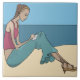CHICA EN LA PLAYA, ESCRIBIENDO UNA CARTA