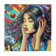 Azulejo Chica escuchando música sobre audífonos Psicodélic