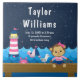 Esta bonita y divertida baldosa cuenta con un mono marinero chica sobre una cubierta de madera con gaviota y cangrejo. Al fondo, un faro rosa y blanco, un bonito pájaro en un velero, olas del océano y un cielo estrellado azul marino. El texto combina fuentes audaces y serif para un estilo elegante y moderno. Puede personalizarse con las estadísticas de nacimiento de su bebé, como el nombre, tamaño, fecha y hora de nacimiento, o si desea dárselas como regalo de ducha puede editar y eliminar texto.
