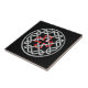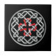 Baldosas de cerámica con un diseño de nudo celta con una cruz cuadrada roja en el centro.