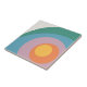 Ilustracion abstracto de círculos de color retro en tonos azules, turquesa, violeta, amarillo y naranja sobre fondo gris