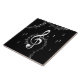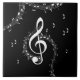 G Clef among white notes of music on black. The black background makes the bright white notes pop.