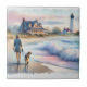 This dreamy coastal artwork captures a tranquil moment at the shoreline, where a woman strolls barefoot with her dog, the soft pastel tones of the setting sun casting a warm glow on the sand and sea. A charming beach house sits nestled among windswept grasses, its porch inviting and timeless, while a stately lighthouse watches over the horizon. Gentle waves roll in with watercolor softness, and hints of blush pink, misty blue, and sun-kissed gold give the scene an ethereal, nostalgic quality. The entire composition evokes slow living, serenity, and the quiet magic of coastal escapes. With a relaxed, coastal cottagecore vibe and a soft, painterly style, this piece blends warmth and whimsy in perfect harmony. AI generated artwork.