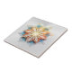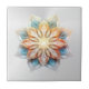 Esta baldosa moderna presenta una mandala colorida tridimensional sobre un fondo plateado mate.