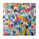 Colorful urban graffiti patchwork pattern ceramic tile featuring bold abstract blocks, expressive brush strokes, scribbles, stars, and mixed-media textures in bright blue, yellow, pink, orange, and black. Energetic and edgy with a modern street art aesthetic, this seamless design is ideal for graffiti art lovers, maximalist style fans, creative teens, and contemporary art enthusiasts.