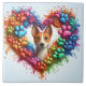 Una forma de corazón deliciosa, formada por vibrantes huellas de pata de varios colores, rodea a un perro adorable, que captura un ambiente caprichoso y alegre. El diseño colorido transmite una sensación de amor y alegría, perfecto para los amantes de las mascotas en todas partes.