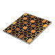 Un sencillo patrón minimalista inspirado en el arte abstracto de la era atómica de los años 50, con columnas de cuadrados redondeados en tonos naranjas, con un fondo negro.