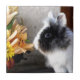 Retrato de conejo enano negro y blanco (Mammal) cerca de mareas amarillas
