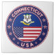 Insignia de Connecticut con bandera de Connecticut y bandera de los colores de Estados Unidos, forma redondeada. Emblema de Connecticut. Sello de Connecticut. Colección de Estados Unidos.