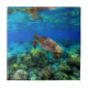 Nadando con las exóticas tortugas tropicales. Vibrante foto del submarinismo justo debajo de la superficie de las azules aguas tropicales. Viendo a las tortugas marinas nadar alrededor de la barrera de coral con pequeños peces tropicales coloridos cerca. Las tortugas marinas pueden vivir hasta 100 años, aguantar la respiración bajo el agua hasta 5 horas al mismo tiempo, comer medusas y pueden pesar hasta 2.000 litros. ¿Decoración en el tema tropical? Con este embaldosado de cerámica tropical de alta calidad podrás realmente mostrar tu lado creativo.