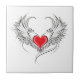Corazón rojo pintado de forma artística con alas de ángel gris, decorado con un contorno suave negro.