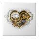 Corazón mecánico, volumétrico, de vapor punk con manómetro de presión, acero y engranajes dorados sobre fondo blanco. Estilo Steampunk.