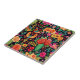Celebre el alma del arte popular mexicano con este impresionante azulejo cerámico que presenta una explosión de flores dibujadas a mano, pájaros, corazones y cactus en colores ricos y vibrantes contra un fondo negro profundo. La escena está viva con una belleza simbólica: aves majestuosas, una que esparce sus alas en una exhibición de fuego, la otra encarnada serenamente, representan libertad y espíritu; rosas florecen a partir de toallas de cactus, mezclan amor y resiliencia; y corazones brillantes rosados y rojos se dispersan como confetti entre marigoles, dahlias e hibiscos. Perfecto para elevar cualquier espacio, esta baldosa de 4.25" x 4.25" de color completo le da un toque folclórico audaz como una pieza central de contragolpe, un trívet en su mesa festiva, o un regalo destacado para vacaciones, bodas o amas de casa. Diseñado desde cerámica blanca y borde impreso a borde con un detalle radiante, es una pieza atractiva de arte utilizable, funcional y expresivo. Sólo uso en interiores; evite la luz solar directa para preservar su brillo saturado.