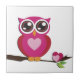 Lechuza en rama arbórea con corazones y hojas. Rojo, rosa, verde. Personalizar con tu propio texto, cambia el tamaño de la imagen, cambia el fondo a cualquier color. Cuto de gentileza animal floral naturaleza abstracta vectorial vintage artístico de arte fino.