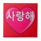 " 사랑해" - "te amo" en coreano. Dé este regalo precioso el el día de San Valentín o siempre que usted desee expresar su amor. Fondo rojo del corazón.