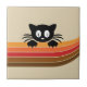 Resumen ilustracion de estilo retro con rayas amarillas, naranjas, rojas y marrones y decoración de gatitos negros sobre fondo beige para cada gato y amante de la retro. Es fácil de personalizar agregando su nombre/monograma, etc.
