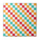 Alternating red, orange, teal, and white squares create a colorful, vibrant checkerboard pattern, conveying an energetic and playful tone.