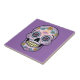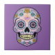 El cráneo de azúcar morado de los Muertos es tan colorido con flores, corazón y diamantes.