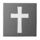 Baldosa de cerámica negra sencilla y elegante con ilustracion cruzado blanco. Muy sobria, se podría utilizar para una decoración religiosa en casa.