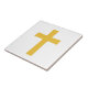 Baldosas de cerámica blanca, sencillas y elegantes, con ilustracion de cruz dorado. Muy sobria, se podría utilizar para una decoración religiosa en casa.