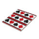 Juego de iconos de juego de tarjetas aislados en fondo rayado negro, rojo y blanco