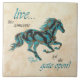 Brilla tu casa con este singular mosaico Inspirador de cerámica de caballos "One of a Kind". Cuenta con una silueta de caballo galopante en turquesa, negro y oro en un fondo de madera marrón claro y la inspiradora cita..."¡Vivir como alguien dejó la puerta abierta"! Este es un Diseño de Arte Gráfico Original creado por el artista Kerry Miller. ¡Disfrútalo!
