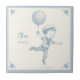 Cute ceramic tile featuring a pencil drawing of a little boy in a sailor suit floating under a balloon in the style of Delft ceramic tiles. The text is fully personalizable. Perfect as a door sign for a new baby nursery or even as an original birth announcement.