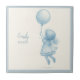 Cute ceramic tile featuring a pencil drawing of a little girl in a frilly dress floating under a balloon in the style of Delft ceramic tiles. The text is fully personalizable. Perfect as a door sign for a new baby nursery or even as an original birth announcement.