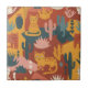 Azulejo Cute Boho Desert Cats Cactus Succulent Pattern