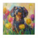 Azulejo Cute Dachshund Colorful Tulips Pintura