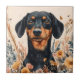 Azulejo Cute Dachshund con pintura de flores silvestres