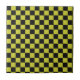 Yellow and black checkerboard pattern with alternating squares. The bold contrast creates a striking, geometric visual effect.