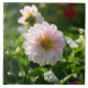 Dahlia blanca en la foto del jardín. Una actitud positiva y buena hacia el trabajo. Se puede usar como fondo para un selfie. La foto fue tomada en 2015. El poster es adecuado para la decoración interior.