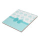Patrón femenino de damasco azul acuático vintage y puntos de polka ondulados adornados con una cinta turquesa atada a un arco. Imagen plana impresa, no cinta real.