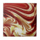 Un diseño artístico abstracto de aguas fluviales con colores rojo, dorado y blanco.
