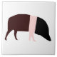 Esta magnífica baldosa presenta una representación de tipo personalizado del cerdo de Saddleback, mi rara raza favorita de cerdo británico. Se reconoce fácilmente por el patrón de albarda rosa que le da nombre a la raza. El resto del cerdo es negro.
