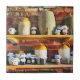 Un vistazo a la despensa del cocinero de los tiempos Tudor y Victoriano. Lleno de mermeladas, confituras, jaleas y barandillas de vino. Acuarela. Inglaterra.