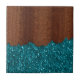 Azulejo De Cerámica Aqua azul chispas purpurina madera marrón rústica
