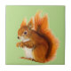 Azulejo De Cerámica Ardilla roja pintada en acuarela