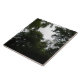 Esta impresionante baldosa muestra una fotografía tomada desde dentro de un bosque denso. La fotografía muestra la oscuridad de los árboles y una pequeña zona de cielo gris. El resultado es una escena espeluznante y evocadora.