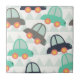 Autos y más autos, un caprichoso, divertido, colorido diseño de transporte genial para niños o adultos que aman los autos, presenta autos de azul marino, verde azulados y grises con neumáticos melocotón y amarillos en un fondo de triángulos azules suaves sobre blanco. Este lindo diseño de auto se puede encontrar en artículos para el hogar, oficina y uso personal que incluyen almohadas de tiro, mantas, ornamentos de sake, cajas de sake, lámparas, frascos, tarjetas de juego, abridores de botellas, tablas de queso, bolsas de regalo y cajas de regalo, relojes de pared, bandejas de servir, toallas de cocina, servilletas, platos de papel, y mucho más!