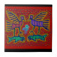 Diseño inspirado en telas de mola kuna indias. Este diseño es de pájaro madre y padre con bebé, pescando pescado. "San Blas Island Mola", "Kuna Birds with Fish", "Kuna Indian Folk Art", "Kuna Mola Birds and Fish", "Virginia Vivier", "Vagabond Folk Art", "Mola Folk Art"