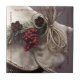 un entorno cálido y confortable con pinecones, gemelos, bayas y vegetación para las vacaciones con gráficos de Happy Holidays. Qué gran trívet de placa caliente para las vacaciones. fotografía y arte de tela por imágenes de kaps