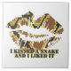 Encantadores de serpientes, amantes de serpientes, y todos los que han besado a una serpiente y le ha gustado, este diseño es para ti. Nuestros labios con estampado de serpiente con las palabras que besé a una serpiente y me gusta que viene con un patrón de piel de serpiente amarillo, marrón y negro con nuestra textura de cepillo seco característica.
