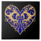 Azulejo De Cerámica Blue Filigree Heart Tile