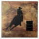 Azulejo De Cerámica Chica de Carreras de barril Silhouette sobre una t